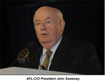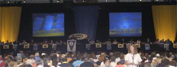 Security. AFL-CIO President John Sweeney then addressed the convention. “Let me also say that you are very fortunate to have Ron Gettelfinger servicing the membership of this great union. This week the press has characterized Ron Gettelfinger has been smart, tough and modest. Modesty is a character trait that more of us who are labor leaders could use and he is an inspiration to us all. I understand the challenges you are facing today, for the AFL-CIO and the UAW are bound together through our past, our present and our future. It was the UAW that won contracts that helped pave the way for the middle class. Together today we are at war with the corporations who use bankruptcy not as a last resort by as a mean to break the standard of living of the workers. It began with the airlines and the steel mills and it has now spread to the auto industry. The situation at Delphi is a prime example of this. The only worker at Delphi who is not in jeopardy is Steve Miller, who watches his wages go up, up, up. The time has come to stand together to bring them down. I know as does your leaders that in today’s market we have to work together, but we will not stand by and allow our members to be stamped out. We have to let voters know that the seeds of bigotry have been replanted in our communities and the seeds are blooming. We have to hold the failures of the Bush Administration up high for all to see. Poverty is up 20%, health care coverage down, pensions in jeopardy, livelihoods at stake. We can make a difference and it begins at the voting places. You have had success with organizing, such as Johnson Controls and Freightliner. It has been said that we must give our children roots and we must give our children wings. The UAW and labor has given wings to the middle class we must keep those wings in flight. Brothers and sisters, there is another saying that goes “What happens in Vegas, stays in Vegas.” I ask that you don’t follow this rule with the information you have received at this convention. Go back to your locals and your communities and tell them what you have learned here. We are just a few seats away from regaining control of the House this fall and it is imperative that we educate our members and our neighbors about the issues facing working families in this country. Thank you all and God Bless the UAW.” The next resolution debated involved community