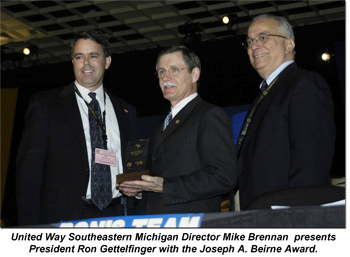President Ron Gettelfinger has a long history of support for the United Way, and serves as a member of the Detroit United Way Broad of Directors and chaired the 2004 Fund Raising Drive. “President Gettelfinger not only “talks the talk” but “walks the walk” as well,” states United Way Southeastern Michigan Director Mike Brennan who nominated Gettelfinger for the award.” To know Mr. Gettelfinger is to know a highly principled, dedicated champion for the rights of others. He is driven by serving others and genuinely wants to make an impact on people’s lives. I can tell you what type of person Ron Gettelfinger