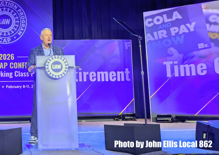 The conference continued on Monday February 9, 2026, with an address from UAW President Shawn Fain. All three International UAW Vice Presidents Laura Dickerson, Mike Booth and Rich Boyer spoke on the importance of retirement security for our members and the working class as a whole.