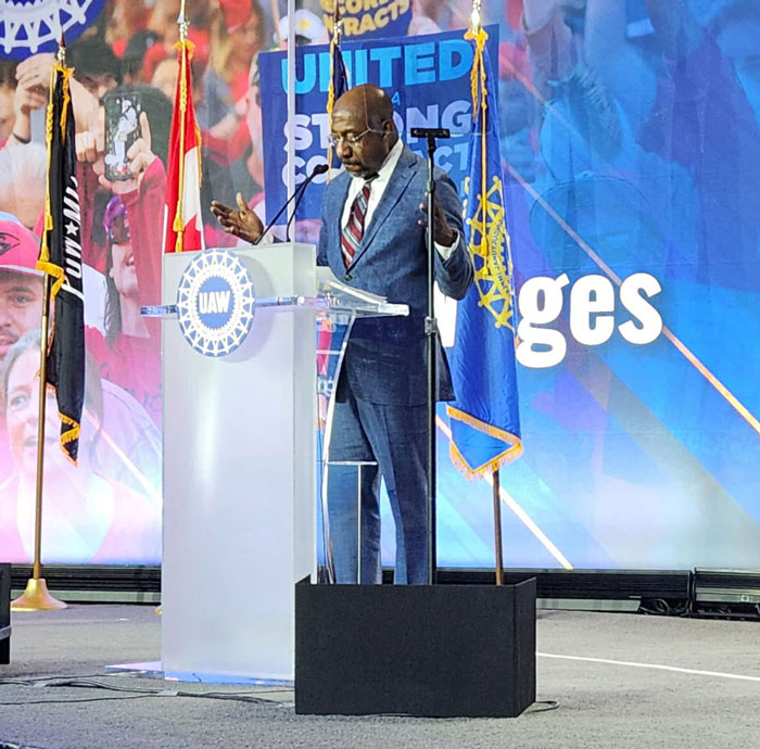 Senator Raphael Warnock took the time to speak at the UAW National CAP Conference. The dream is slipping away. They're siding with billionaires instead of the American worker.