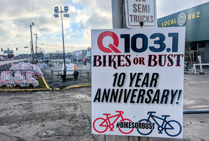 Bikes or Bust in Louisville began in 2015 as a holiday bike drive organized by Q103.1 radio and has since grown into an annual tradition, collecting thousands of new bicycles for children in need across Kentucky and Southern Indiana.