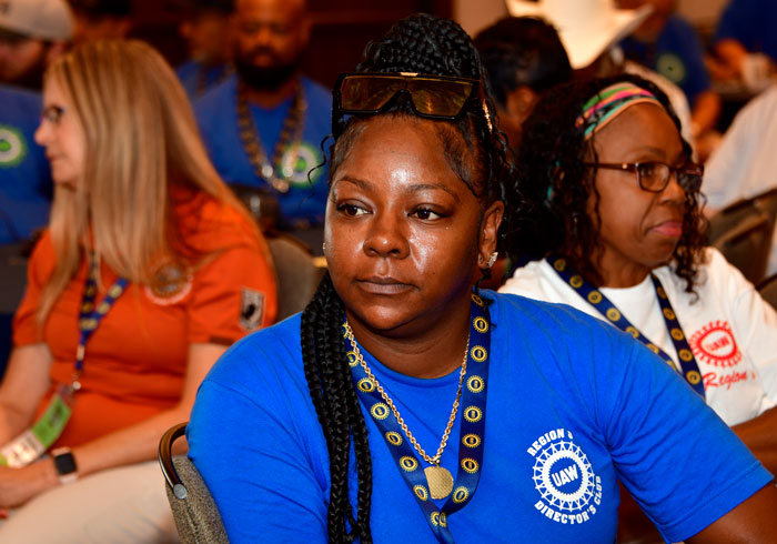 “Elections matter,” Director Smith stated. “National, state and local elections all matter. We have to show up and elect candidates that stand with us. President Reuther said the ballot box and the bread box are connected and that is a fact. We have to make sure our members understand the issues and how we are impacted by it. Yesterday we were at the San Antonio Food Bank. These people do an amazing work. They have seen their budgets cut due to this “big beautiful bill.” When we cut spending that protects our most vulnerable to benefit those who have the most, we have a problem. When we watch public sector unions being attacked, we have to realize we are next. In May of 2028 the UAW is planning on negotiating our major contracts at once. If we are forced to call a broad strike, they will come after us. We have to elect people who will support us. I challenge you to educate your members. You have influence and you have to use that influence. Let us leave this conference mobilized. The UAW is not just a union but a force of justice. We will stand in solidarity and win for our workers.” Listen to Director Smith's Address here