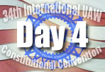 resolutions left in the This convention was held during a time when union members and working class Americans everywhere find themselves under attack from the powers of corporations and right winged politicians. As President Gettelfinger stated on the opening day this union was born in adversity. These are challenging times but the leadership and membership of this great union are up to the challenge. Solidarity is the glue that holds working Americans and union members together. Labor and the middle class are tied together and we rise or fall together. We must continue the fight for the rights of working Americans, we must continue the fight for our members and we must continue to fight for our right to a living wage. We were born out of adversity and it is adversity that binds us together. We must fight for our members, fight for the right to organization for the unorganized and we must never waiver in our commitment. We must leave this convention solid in our