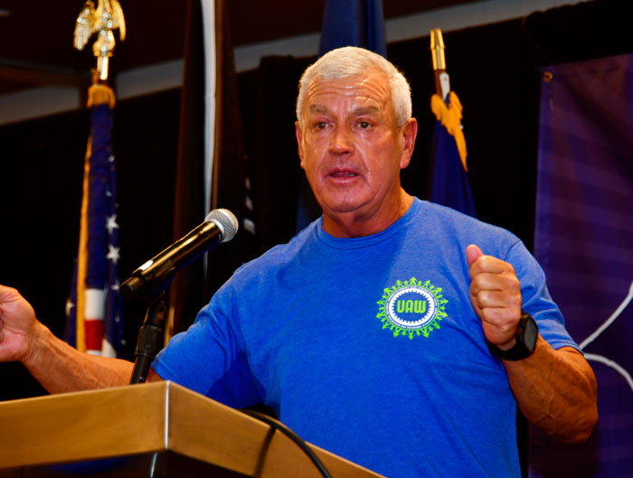 Region 8 Representative Jeff Hall gave the report for Veteran’s Department. “I joined the military to make a difference,” Jeff Hall said. “I never dreamed we would have a commander in chief who would work to be a dictator. From a UAW standpoint we have to be concerned about our bargaining rights. As Veterans we have to stand for the principles our country was founded on.”
