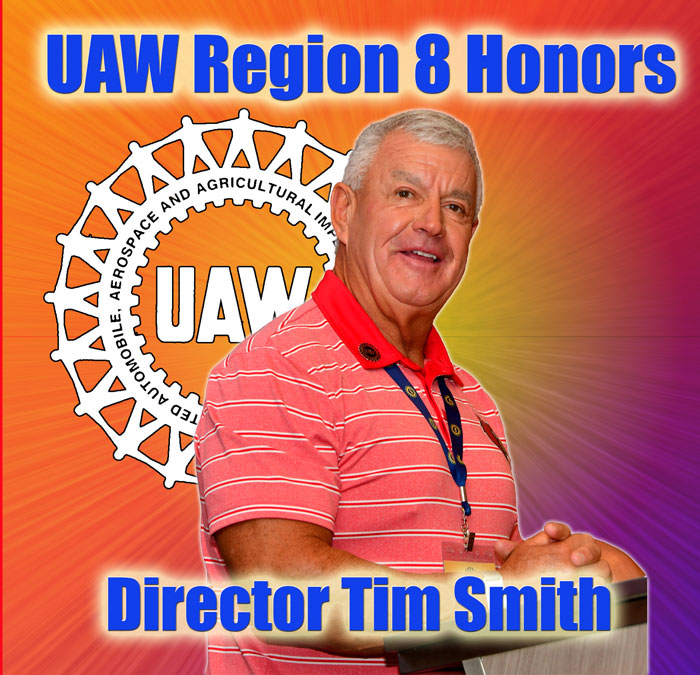 At the UAW Region 8 Winter CAP Budget meeting in Nashville, Tennessee, Region 8 Director Tim Smith was presented with a keepsake photo book of his past eight years as Assistant Director and Director of Region 8. The book was assembled by UAW Region 8 webmaster John Davis and presented to Director Smith by Davis and Assistant Director George Palmer.