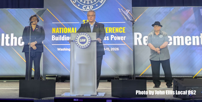 The conference continued on Monday February 9, 2026, with an address from UAW President Shawn Fain. All three International UAW Vice Presidents Laura Dickerson, Mike Booth and Rich Boyer spoke on the importance of retirement security for our members and the working class as a whole.