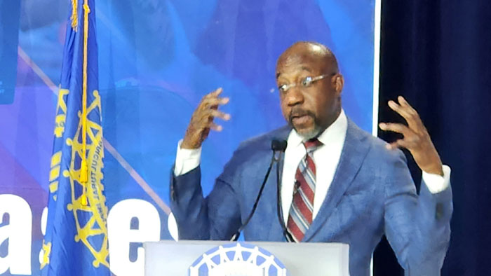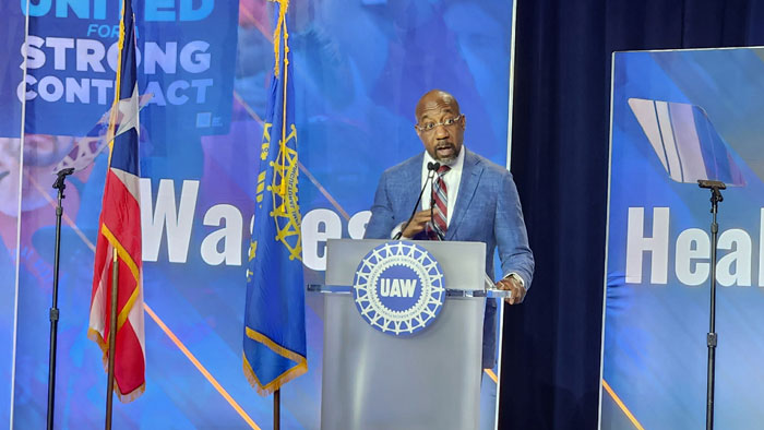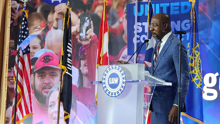 Senator Raphael Warnock took the time to speak at the UAW National CAP Conference. The dream is slipping away. They're siding with billionaires instead of the American worker.