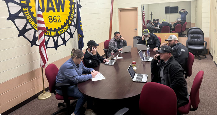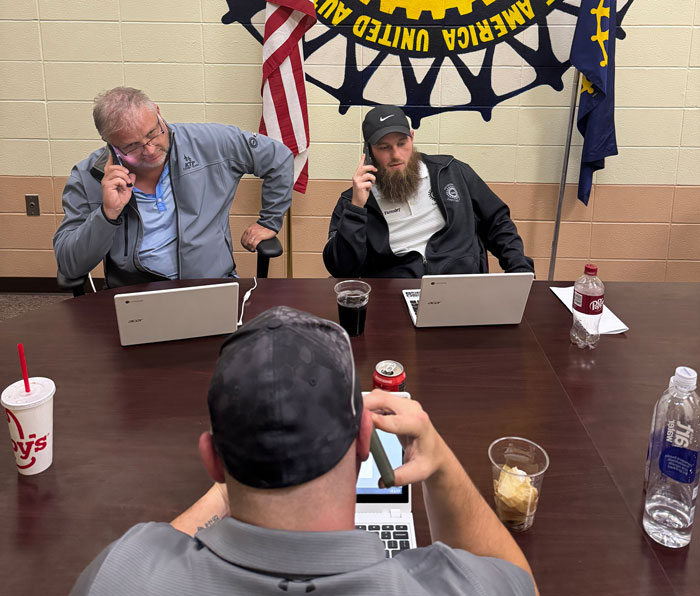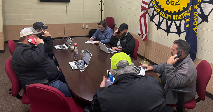 UAW Local 862 members phone banking for support of VP Harris today. Included are members Kimberly Janes, Casey Farnsley, David Borgal, Hank Wiley, Derek Firkins, Donnie Hughes and Bryan Kessinger - CAP Chairman for Ford Kentucky Truck.  |