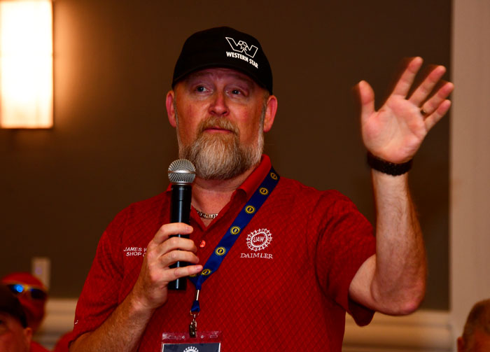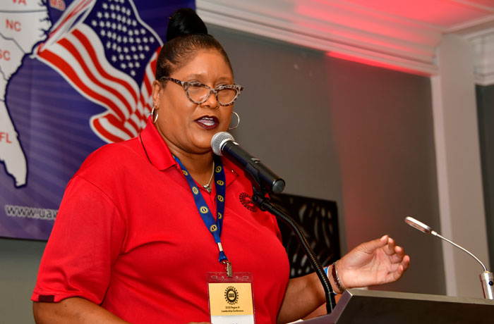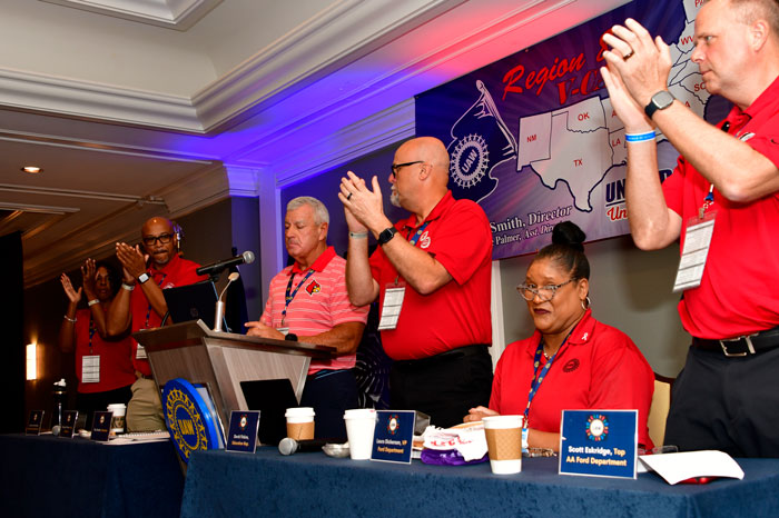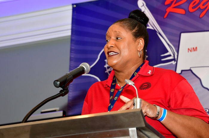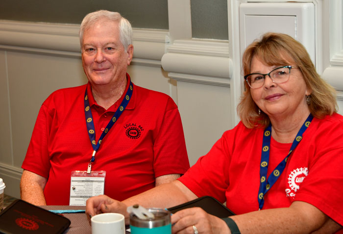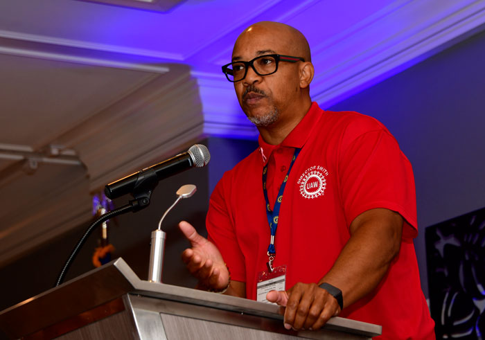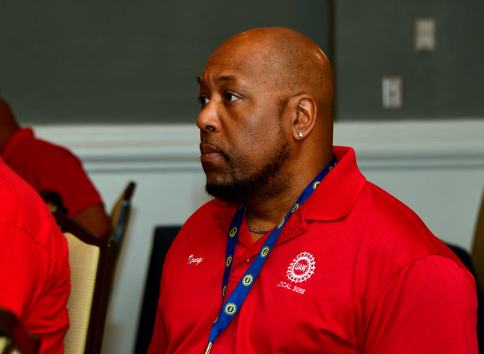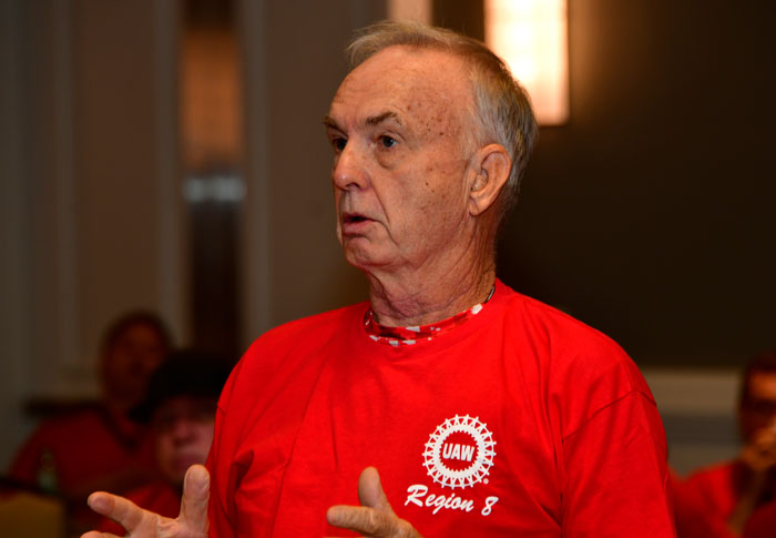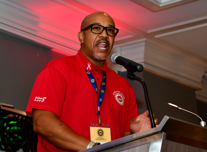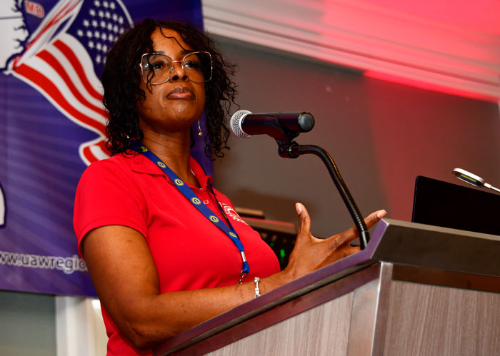 Day Two began with a welcome from UAW Region 8 Assistant Director George Palmer. “We are fortunate to have Secretary Treasurer Mock, Vice President Laura Dickerson, Vice President Mike Booth and Vice President Rich Boyer here this week,” Assistant Director Palmer stated. “We are proud that we have diversity in our International Executive Board. As I look out across the room, I see more female representatives among the ranks of our Region 8 leadership. I want all the females in the room to stand and be recognized.”