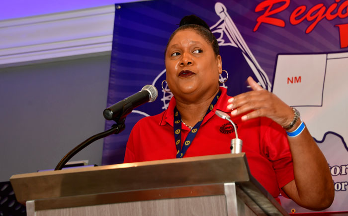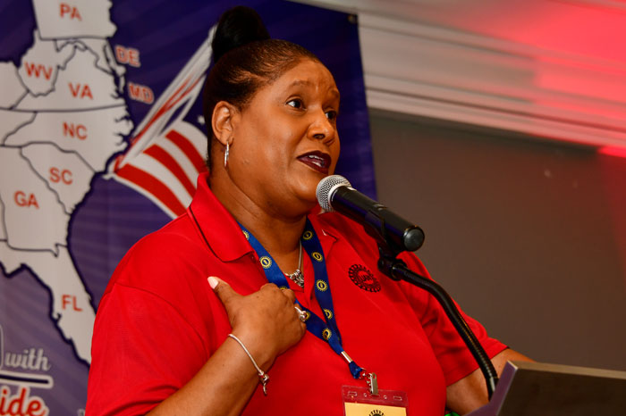 Director Tim Smith came forward to introduce the next speaker. “Vice President Laura Dickerson is a trail blazer in the UAW,” Director Smith stated. “She was the first African American female to be elected as Regional Director. Then she became the first African American female to be elected as a Vice President. Vice President Dickerson and myself go back a long way and it is a honor to have her with us today.”