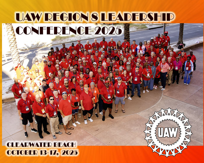 The second day of the 2025 UAW Region 8 Leadership Conference kicked off at 8:00 AM on Wednesday, October 15 from the Clearwater Hyatt Regency. This conference is designed to provide local union leaderships with updates from the Region and the International UAW. Being Red Shirt Wednesday, the delegation turned out in all red.
